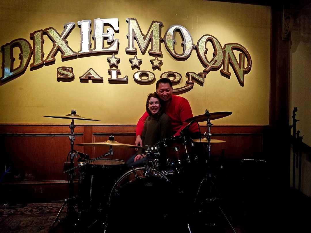 It was hard for me to not start banging on the drums that we got the picture with. Thankfully it was early on in the day or else I might’ve totally ignored the bar manager telling me I could get up there for a pic if I didn’t try to start playing them…